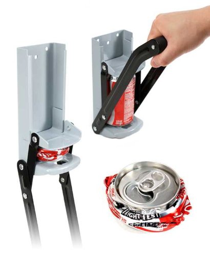 - Simply hold the crusher's handle and pull it down to crush a can