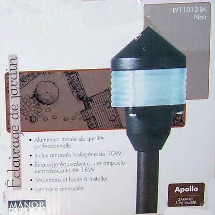 Low voltage 12 volt Ground stake path light -Manor House "Abbey" ~~ UV protucted paint black finish ~~ Fixture stands 9-1/2 inches -2-1/2 inches diameter ~~ Aluminum construction with glass globe - Rust proof ~~ Requires a 10 watt halogen bulb (included) - Similar brightness as an 18 watt incandescent bulb..../ "ABC Products" - Manor House ~ Cast Aluminum - 12 Volt - Low Voltage "Apollo Ground Stake - Path Light (10-Watt Halogen Bulb - Black Finish). / can crusher