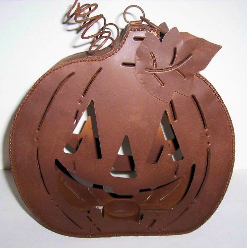 CHECK LOWEST PRICES "ABC Products" - Rusty Tin ~ Halloween Pumpkin - Votive Holder (Mantel, Center Piece or Hang With Top Ring).